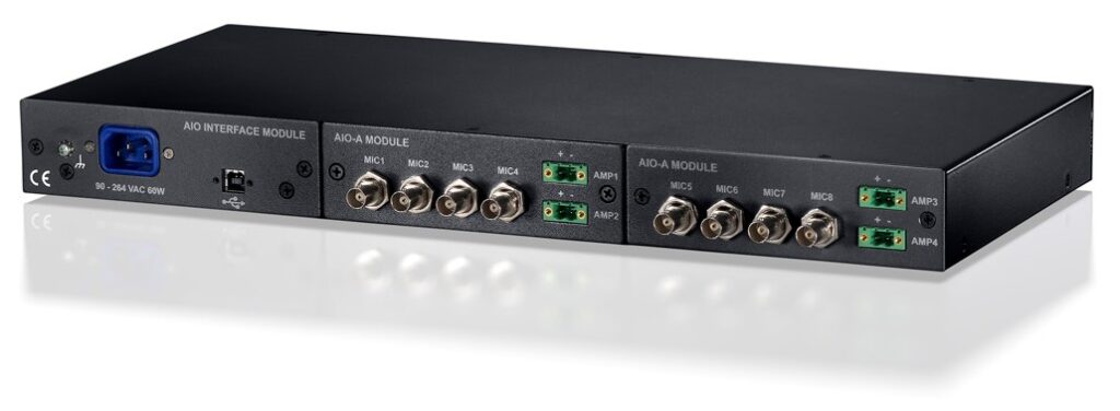 The Echo AIO™ (All-In-One) is Echo’s legacy modular acoustic test interface. In production since 2014, it can be configured at the factory for different testing scenarios by populating it with various audio modules.