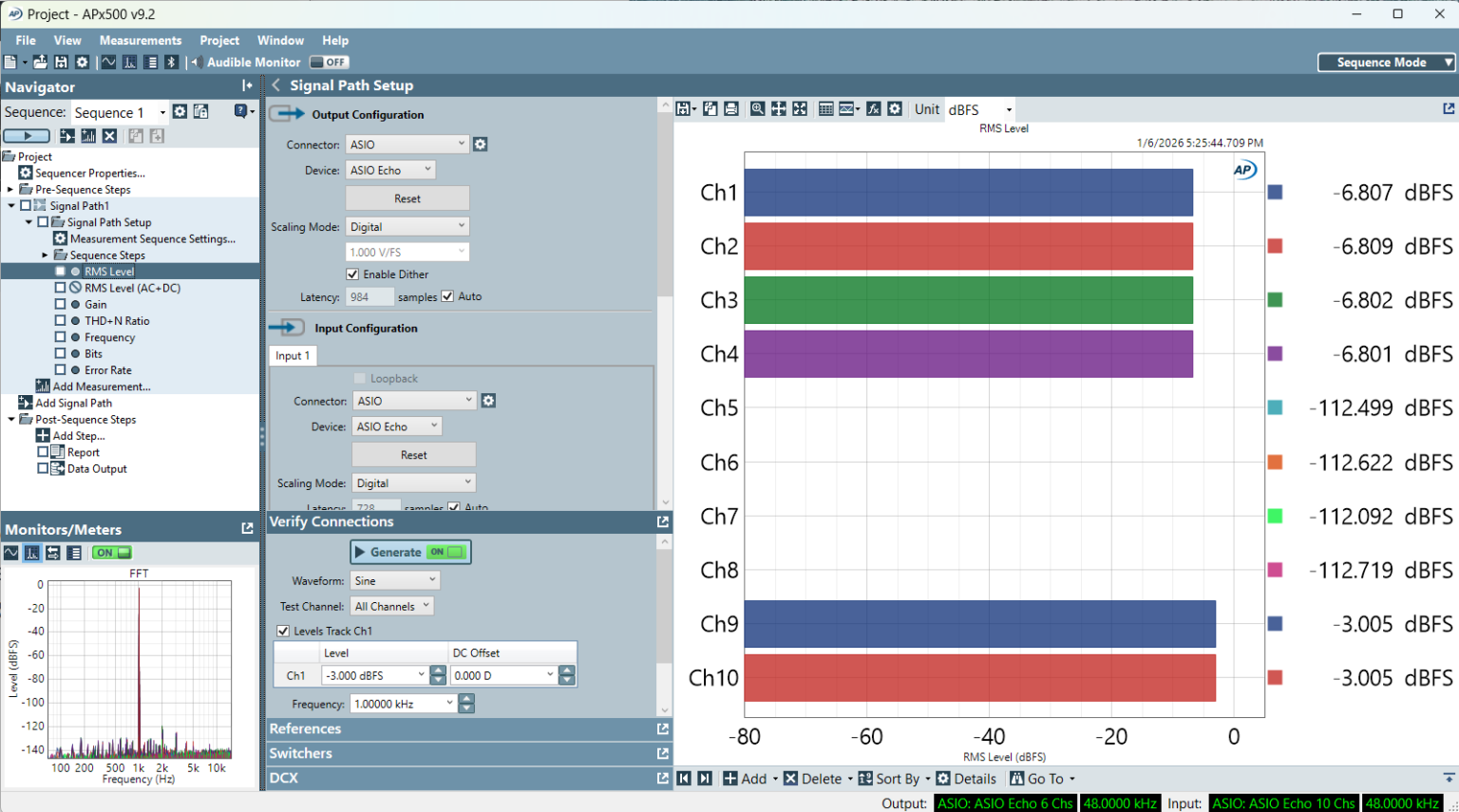 Both the ATS and AIO are cross-platform USB audio devices with support for ASIO, WASAPI, CoreAudio, and ALSA. A Command Line Interface, and API allow seamless pairing with audio test software such as APx500 Flex, LabView, SoundCheck, and Klippel or applications written in-house.
